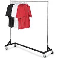 Rolling retail clothing racks are used to place donated clothing on for sorting by season, style, and size. They are then rolled to the proper area and ready to put away!
