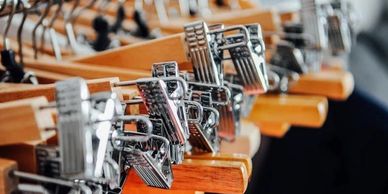 We use hangers to display our items. Retail hangers (with swivel tops) are preferred, but we will gladly use any wood or plaster hangers and clip hangers.